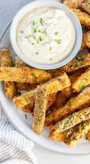 Enjoy a healthier take on a classic favourite. These air-fried chicken strips and zucchini fries are crispy, delicious, and guilt-free!